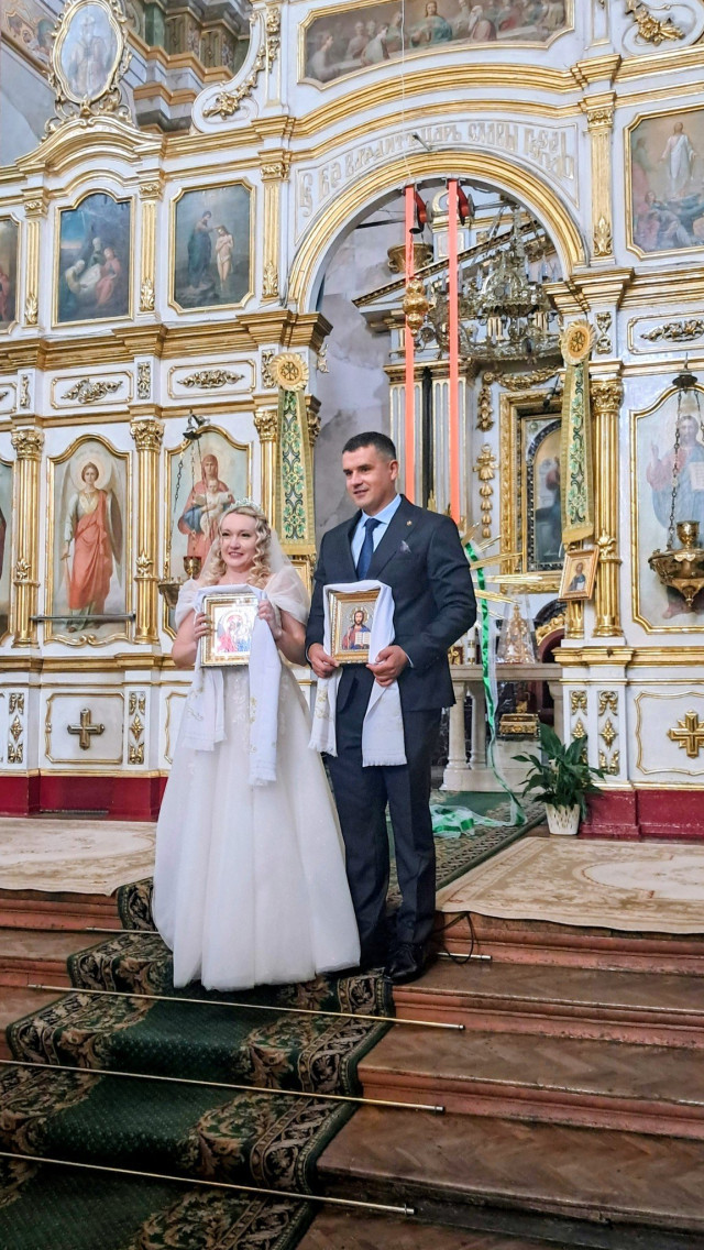 Пара вирішила взяти церковний шлюб у день своєї п’ятої річниці подружнього життя. Вінчання відбулося у Свято-Троїцькому соборі в Луцьку в присутності рідних і друзів. Судячи з фото, святкове відзначення події відбулося у ресторані «На пагорбі».