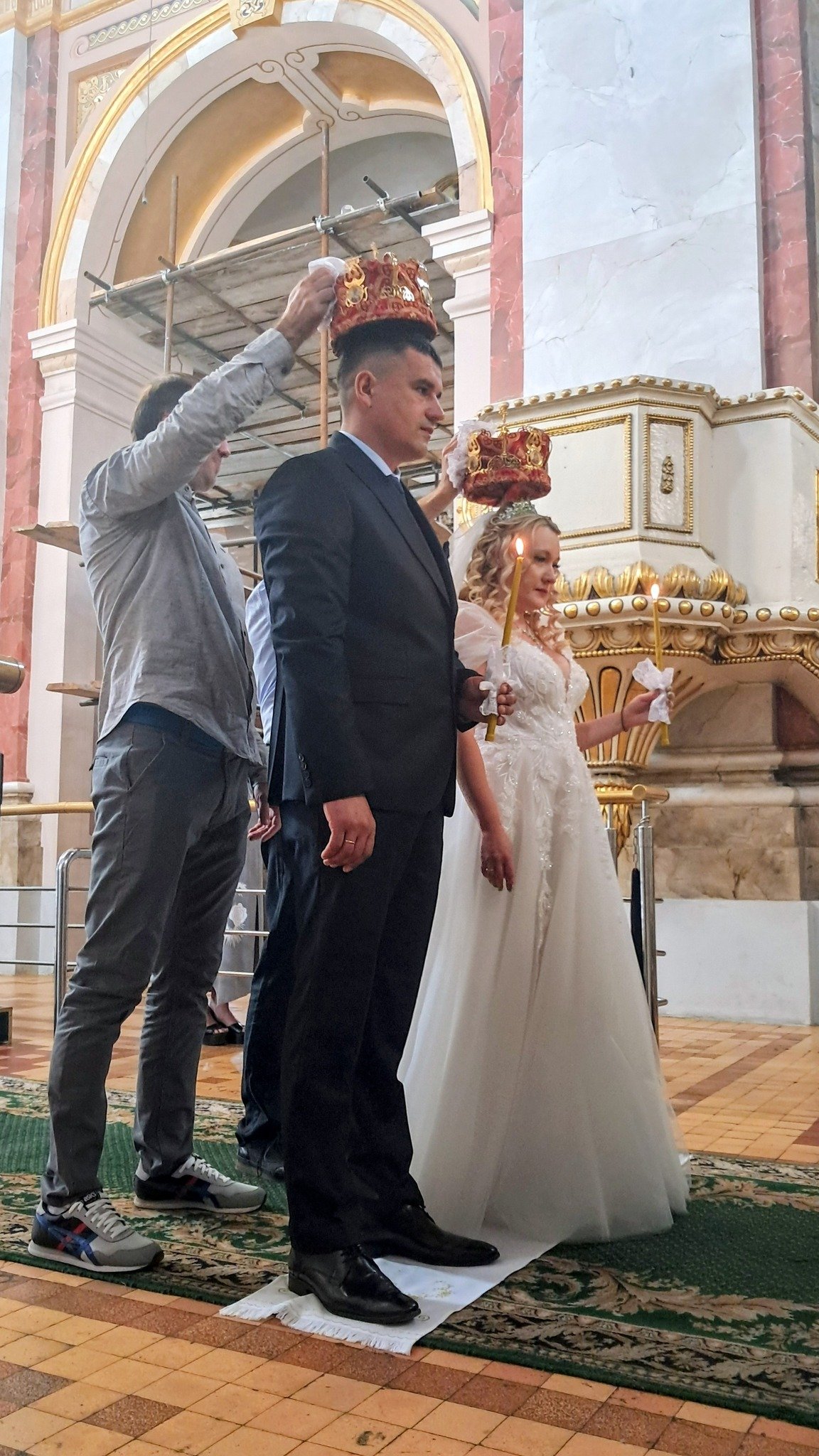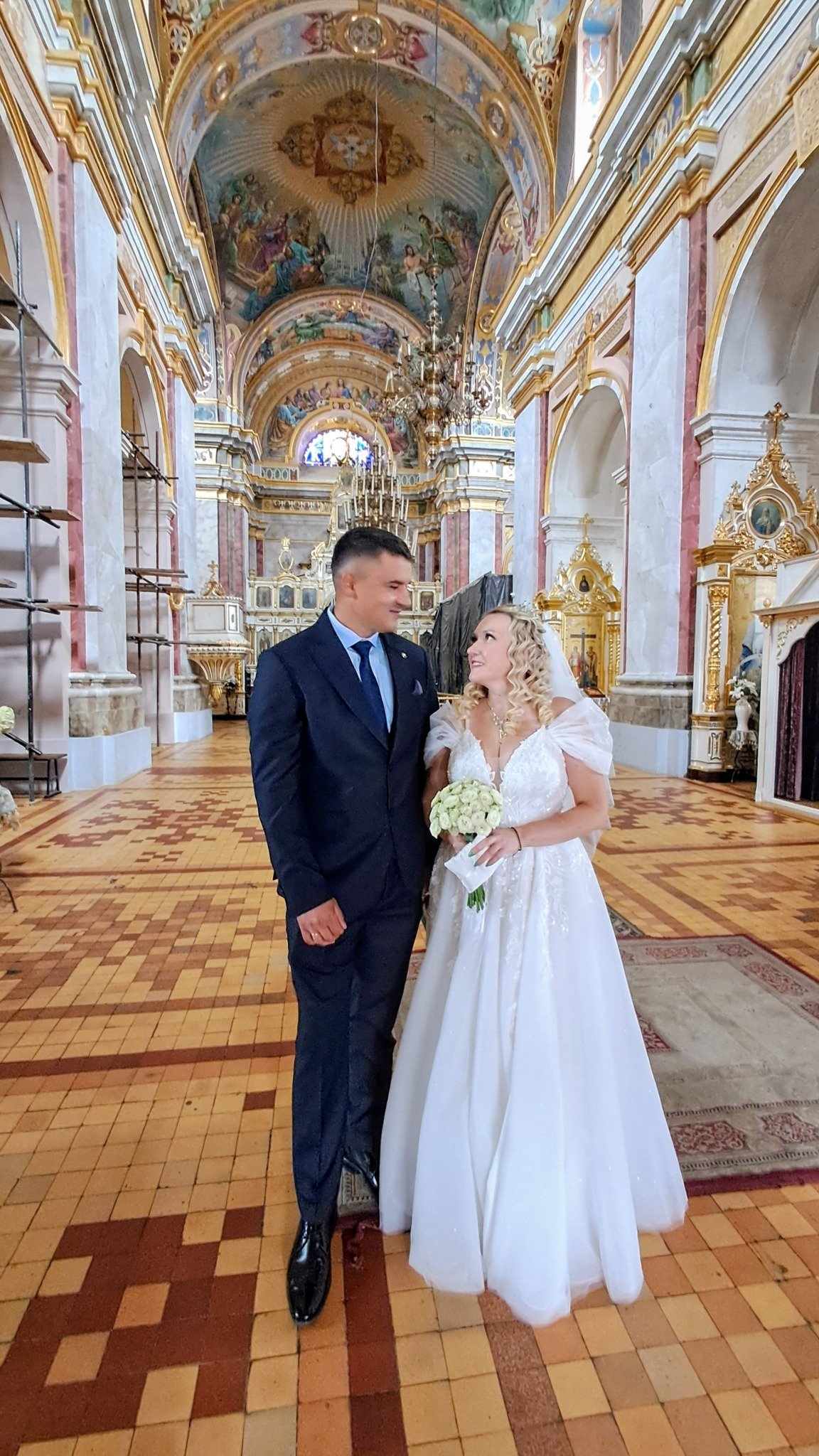 Пара вирішила взяти церковний шлюб у день своєї п’ятої річниці подружнього життя. Вінчання відбулося у Свято-Троїцькому соборі в Луцьку в присутності рідних і друзів. Судячи з фото, святкове відзначення події відбулося у ресторані «На пагорбі».