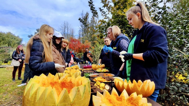 «Сьогодні у нас день гарбуза. Є різні фотозони: з тризубом і квітами, а також з гарбузами. При вході у нас – виставка квасолі та сільськогосподарських продуктів», – каже лучанка.