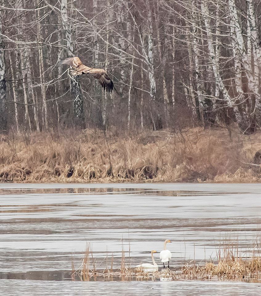 Рябчика, зграю самиць тетерука та рекордну кількість орланів-білохвостів – 37 особин за два дні зафіксували бердвотчери (орнітологи-любителі) у Чорнобильському радіаційно-екологічному біосферному заповіднику під час експедиції з дослідження птахів. Також вони спостерігали за лебедями-кликунами, канюками, різними видами дятлів, снігурами, синичками та багатьма іншими пернатими.