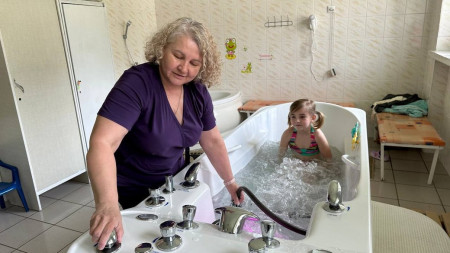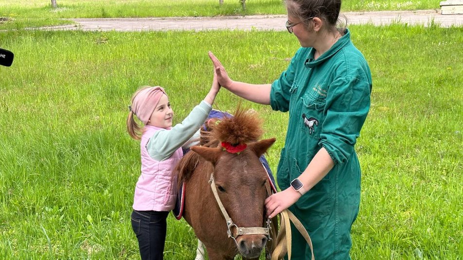 Фізична терапевтка Любов Мурашко – спеціалістка з іпотерпії. Каже, що завдяки спілкуванню з поні діти долають страх перед тваринами, формують фізичні навички та отримують позитивні емоції.Восьмирічна Естер із Маневичів має вроджену травму – лівобічний парез. Її мама Людмила Бондар каже, що щоразу після реабілітації бачить покращення фізичного стану в дитини.