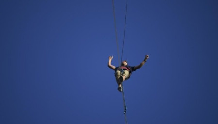 Зазначається, що естонський акробат став першою людиною, яка здійснила трансконтинентальний перехід по канату.
