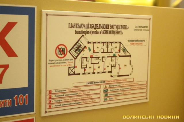 Зі слів заступника начальника Луцького міськрайонного відділу Управління державної служби з надзвичайних ситуацій України у Волинській області Сергія Денисюка, на виконання доручення прем’єр-міністра України, на прикладі готелю «Noble», рятувальники провели позапланову перевірку додержання виконання вимог дотримання пожежної та техногенної безпеки.
