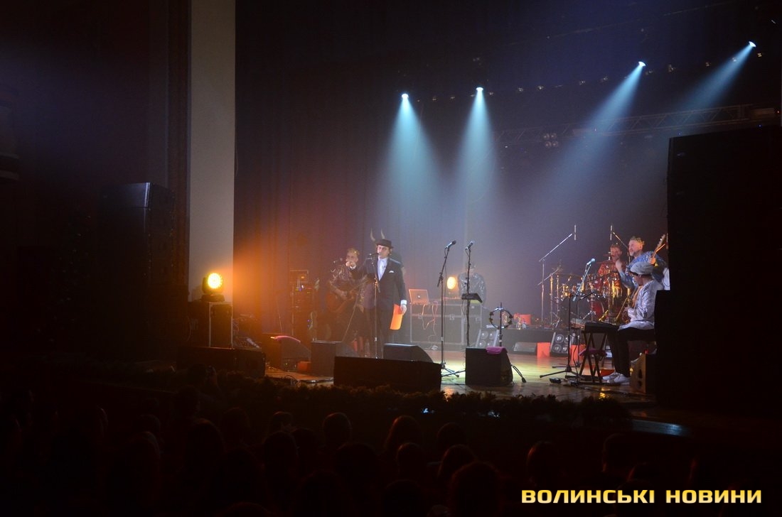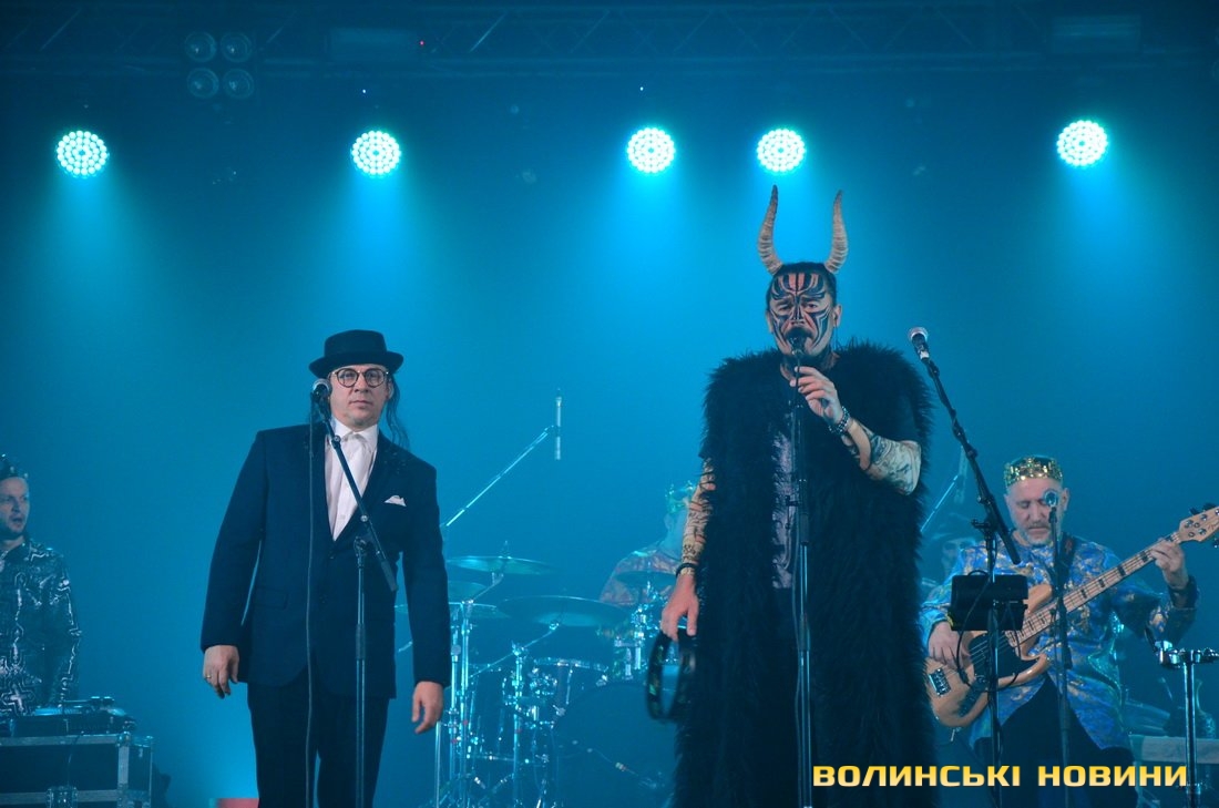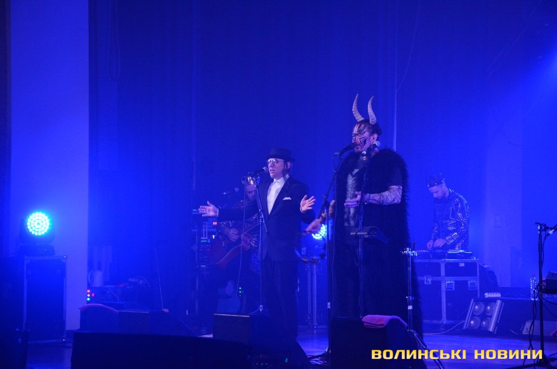 «Танок на майдані Конґо» вітає Луцьк», – звернулися до присутніх у залі співаки.«У нас є кілька різдвяних пісень, акустична програма, яку ми зазвичай граємо в театрах, а цього разу ми вирішили все поєднати, перемішати і показати щось таке, чого раніше не робили», – зазначив Олег Михайлюта (Фагот), який зіграв роль Чорта.