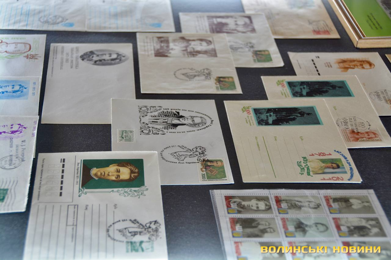 У вітринах розміщені книги, колекції філателії, нумізматики та фалеристики.Виставлено також повне академічне зібрання творів Лесі Українки в 14 томах, яке підготували й видали в 2021 році науковці Волинського національного університету імені Лесі Українки з нагоди 150-річчя з дня народження письменниці.