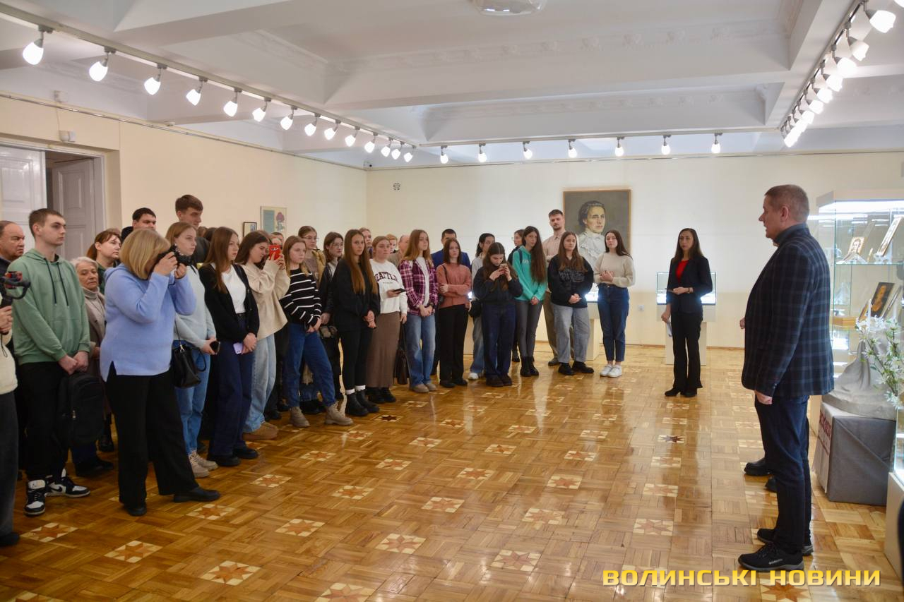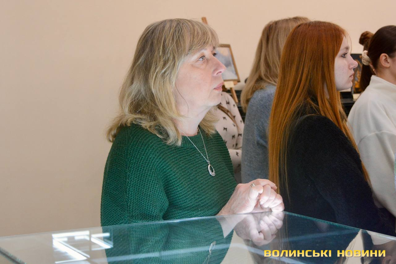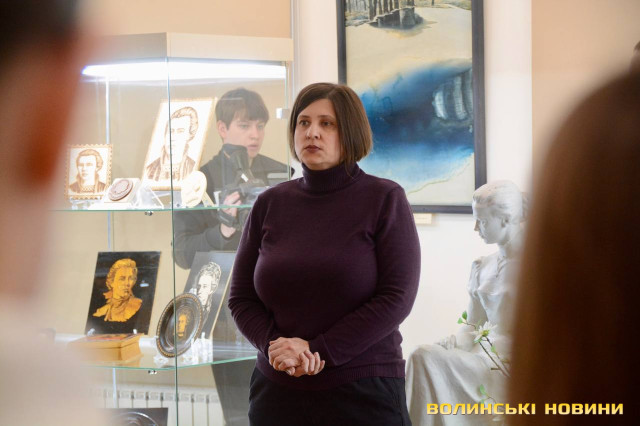 Відкрила виставку очільниця Волинського краєзнавчого музею Оксана Важатко. Вона нагадала, що традиційно останній тиждень лютого ми присвячуємо постаті Лесі Українки, її творчості.Читати ще: «Інший поруч»: як Будинок офіцерів у Луцьку перетворився на мистецьку галерею. Фото