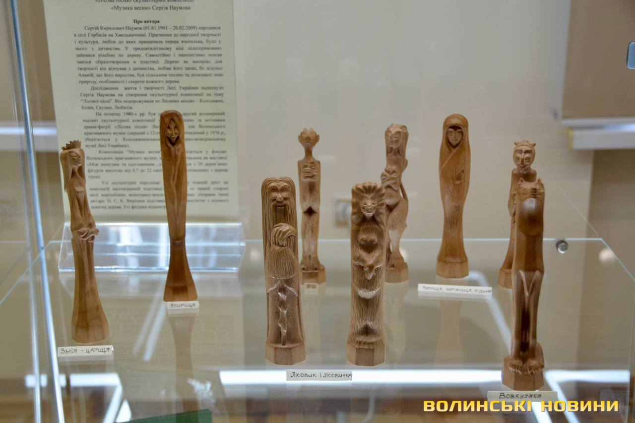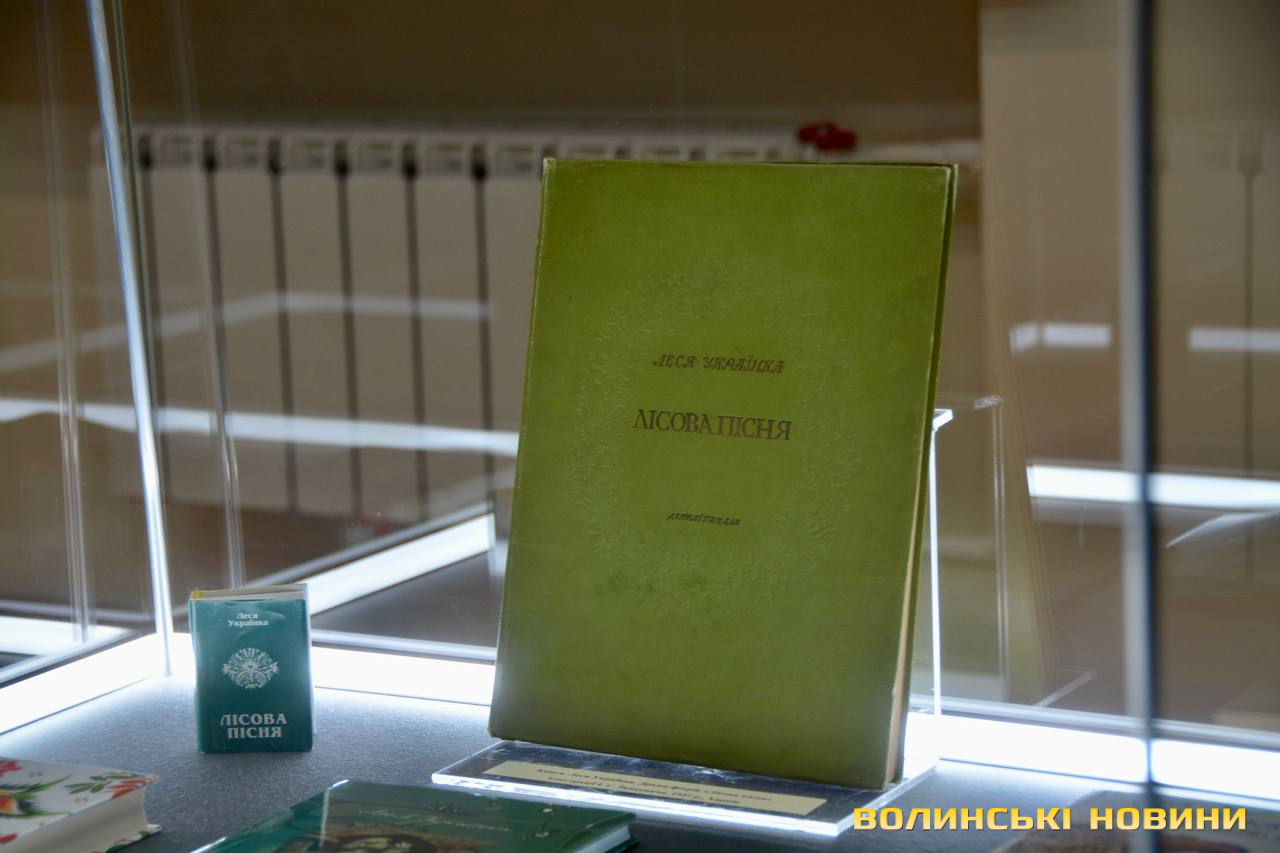 Фарфорова чашка, яка належала Лесі Українці, ексклюзивні видання її творів, конверти, листівки та значки, присвячені видатній письменниці та її найвідомішому тексту, дерев’яні скульптури персонажів із «Лісової пісні» авторства Сергія Наумова, картини з інтерпретаціями сюжету драми-феєрії художника Олександра Дишка – ці та багато інших експонатів можна оглянути в залі Волинського краєзнавчого музею.
