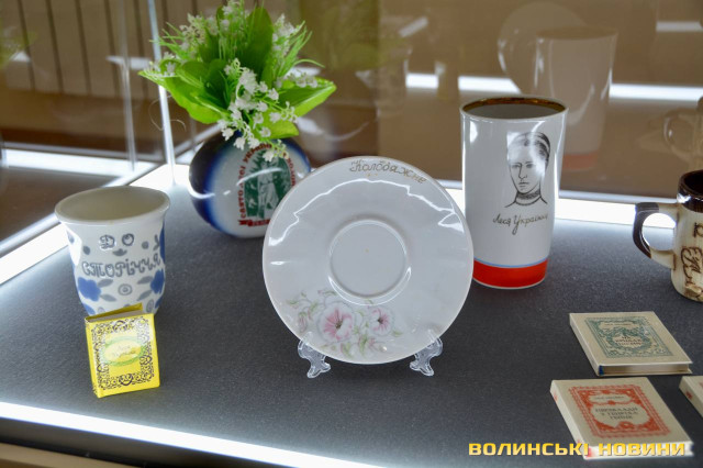 Унікальний експонат – порцелянова чашка, яка є особистою річчю Лесі Українки.Окремий розділ виставки, як згадувала головна зберігачка фондів Волинського краєзнавчого музею Оксана Моренчук, присвячено «Лісовій пісні».
