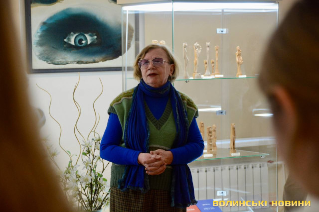 Детальніше з експозицією присутніх ознайомила головна зберігачка фондів Волинського краєзнавчого музею Оксана Моренчук.