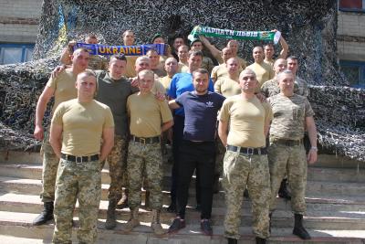 Гравець національної збірної України волинянин Артем Федецький, головний тренер молодіжної команди «Карпат U-19» Андрій Тлумак та легенда львівського футболу, колишній гравець «Карпат» Михайло Кополовець провели символічний поєдинок для підняття бойового духу в передмісті Донецька, інформують у прес-службі Держприкордонслужби.