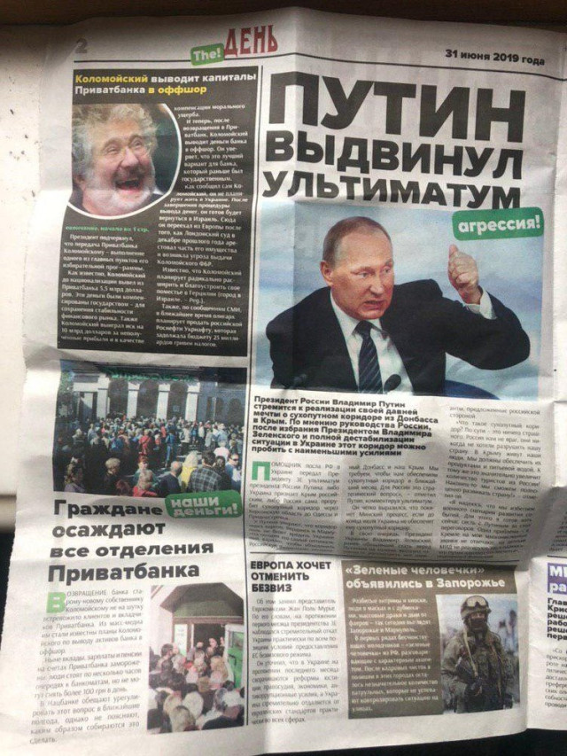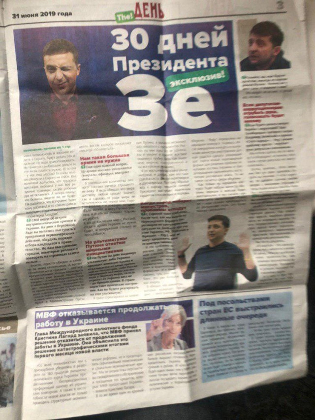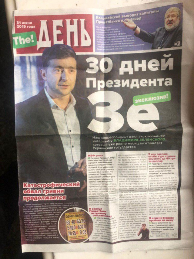 У Києві роздають газети під назвою «The! День» з антипіаром кандидата в президенти, шоумена Володимира Зеленського.