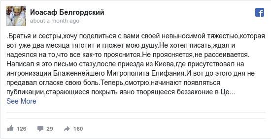 «Там багато з чим можна не погоджуватися. Але треба сказати, що митрополит Білгородський Іоасаф написав правду», – заявив Філарет.