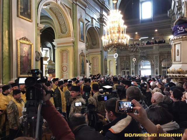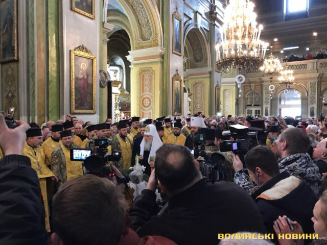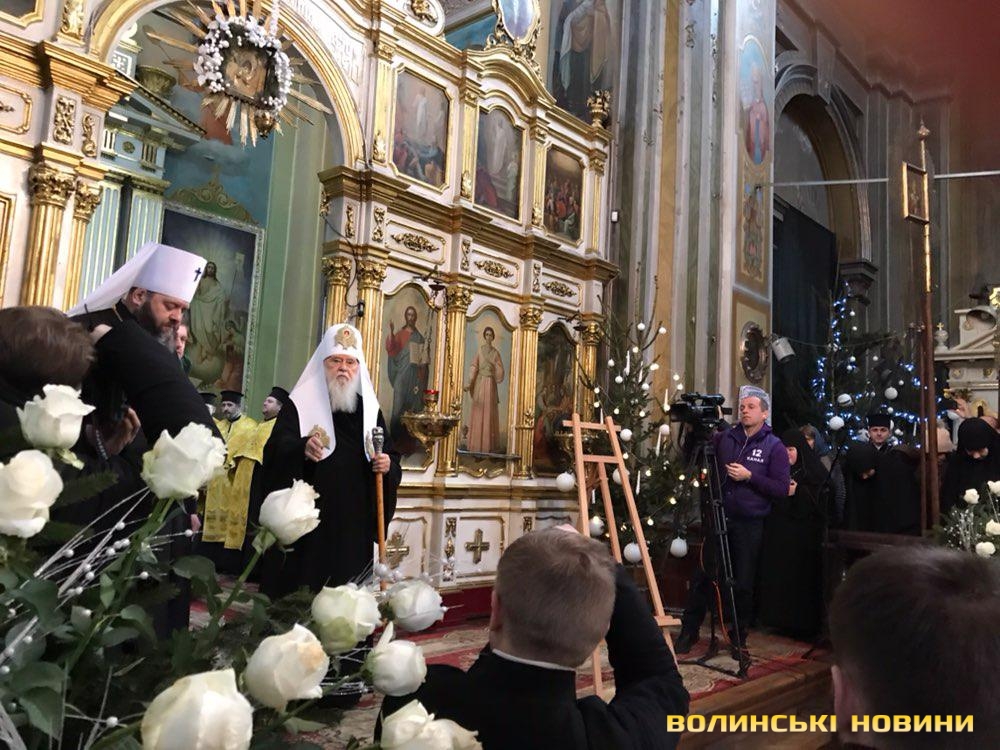 Філарета, який увійшов в собор разом з митрополитом Луцьким і Волинським Михаїлом, присутні зустріли гучними оплесками та заспівали колядку «Нова радість». У відповідь він благословив усіх присутніх та пішов готуватись до Богослужіння.