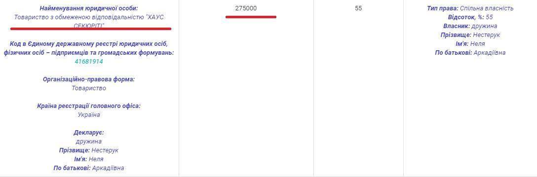 У 2017 році дружина депутата Петра Нестерука Неля Нестерук стала співвласницею охоронної фірми «Хаус Секюріті». Молодий вік компанії не заважає їй успішно брати участь у закупівлях та отримувати підряди.