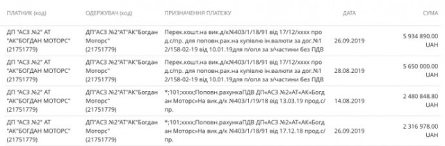 Гроші перераховані з рахунку Державної казначейської служби на приватний рахунок «Богдан Моторс», відкритий в «ОТП банку». За що саме сплачено гроші – кількість авто та вартість за одиницю – не вказано.