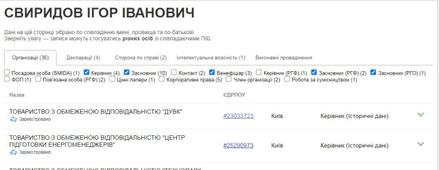 У червні 2019 року Господарський суд міста Києва ухвалив рішення № 82460226, яким стягнули з Товариства з обмеженою відповідальністю «ДУВК» штраф в сумі 68 000,00 грн. та пеню в сумі 68 000,00 грн. Одним з власників, якому належить 50% акцій підприємства, є Ігор Свиридов.
