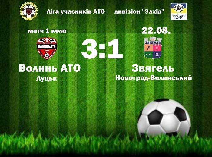 Команда ФК «Волинь АТО» здобула перемогу з рахунком 3:1 у матчі із житомирською командою ФК «Звягель АТО».