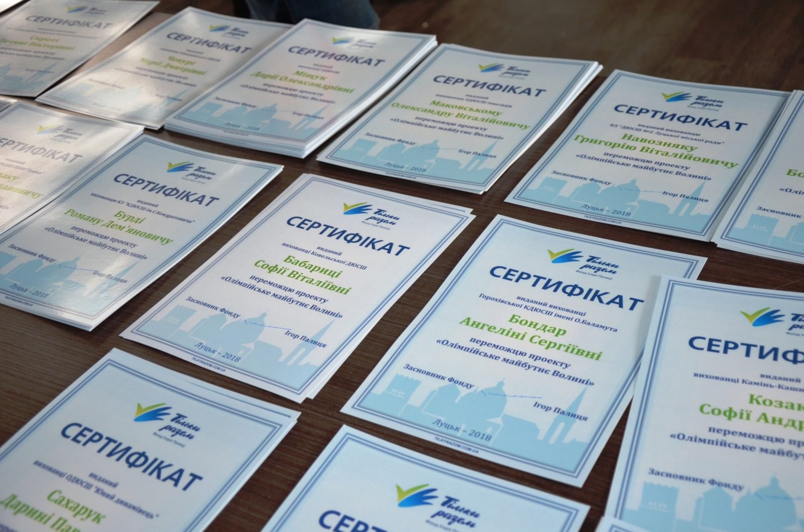 Керівник програми «Волинь спортивна» Олексій Сорокун привітав майбутніх олімпійців та зазначив, що Фонд упродовж своєї діяльності підтримує обдарованих дітей. Так, з 2015 року Фонд виплачував стипендії талановитим спортсменам. Цьогоріч стипендіальний проект дещо переформатувався. Фонд виплачуватиме грошові винагороди юним переможцям та призерам чемпіонатів України та спартакіади «Повір у себе». За І місце юні спортсмени отримають 3 тис. грн, за ІІ місце – 2 тис. грн, за ІІІ місце – 1,5 тис. грн.Перший заступник голови правління Фонду Лариса Тарасюк привітала талановитих юнаків і дівчат та подякувала їхнім наставникам за те, що вкладають час, сили та душу у вихованців.