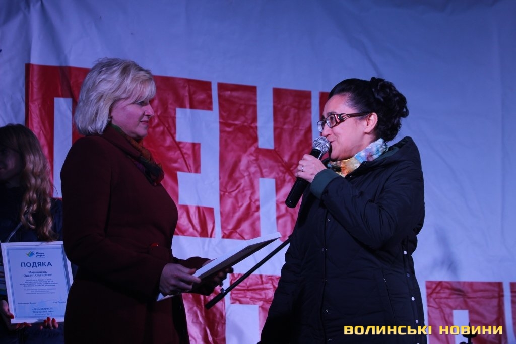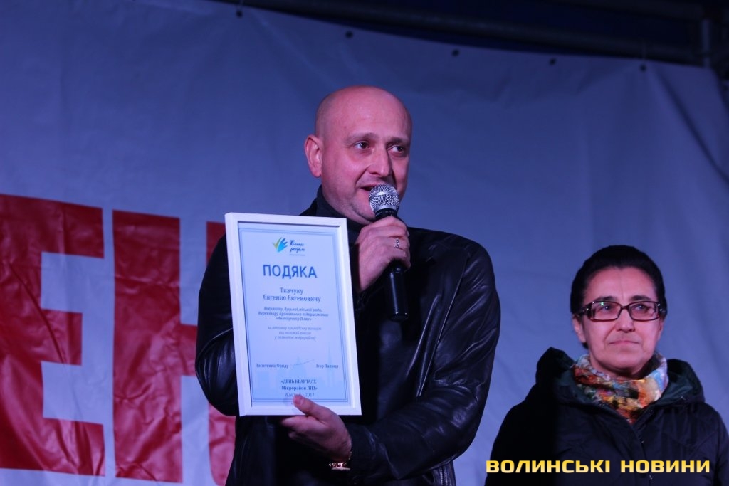 «Ми разом реєстрували фонди розвитку при навчальних закладах, разом засновували ОСББ, разом проводили змагання, фестивалі», – зазначила Лариса Тарасюк. Та додала, що у зв’язку з цим їй надзвичайно приємно вручати подяки тим людям, які долучалися до підтримки діяльності Фонду.За активну громадську позицію та ефективну реалізацію спільних проектів першим подяку Фонду Ігоря Палиці «Тільки разом» отримав депутат Луцької міської ради Євген Ткачук. Він зауважив, що нагорода – не його особисто, а всього мікрорайону.