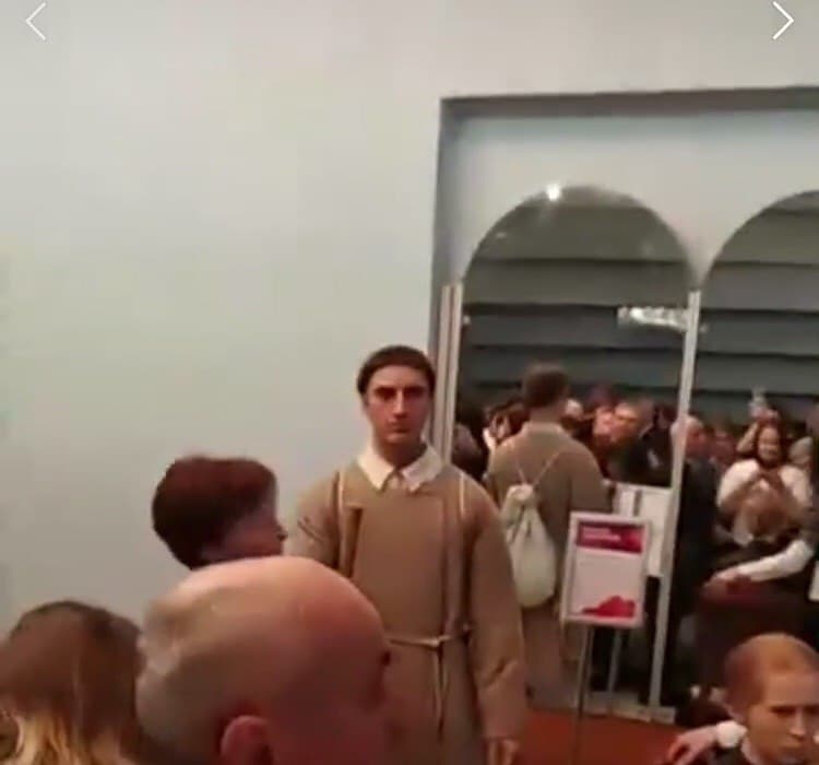 14:20 Президент з першою леді пройшлися залом в оточенні охорони. Гості вітаються з ними за руку, деякі робили селфі.