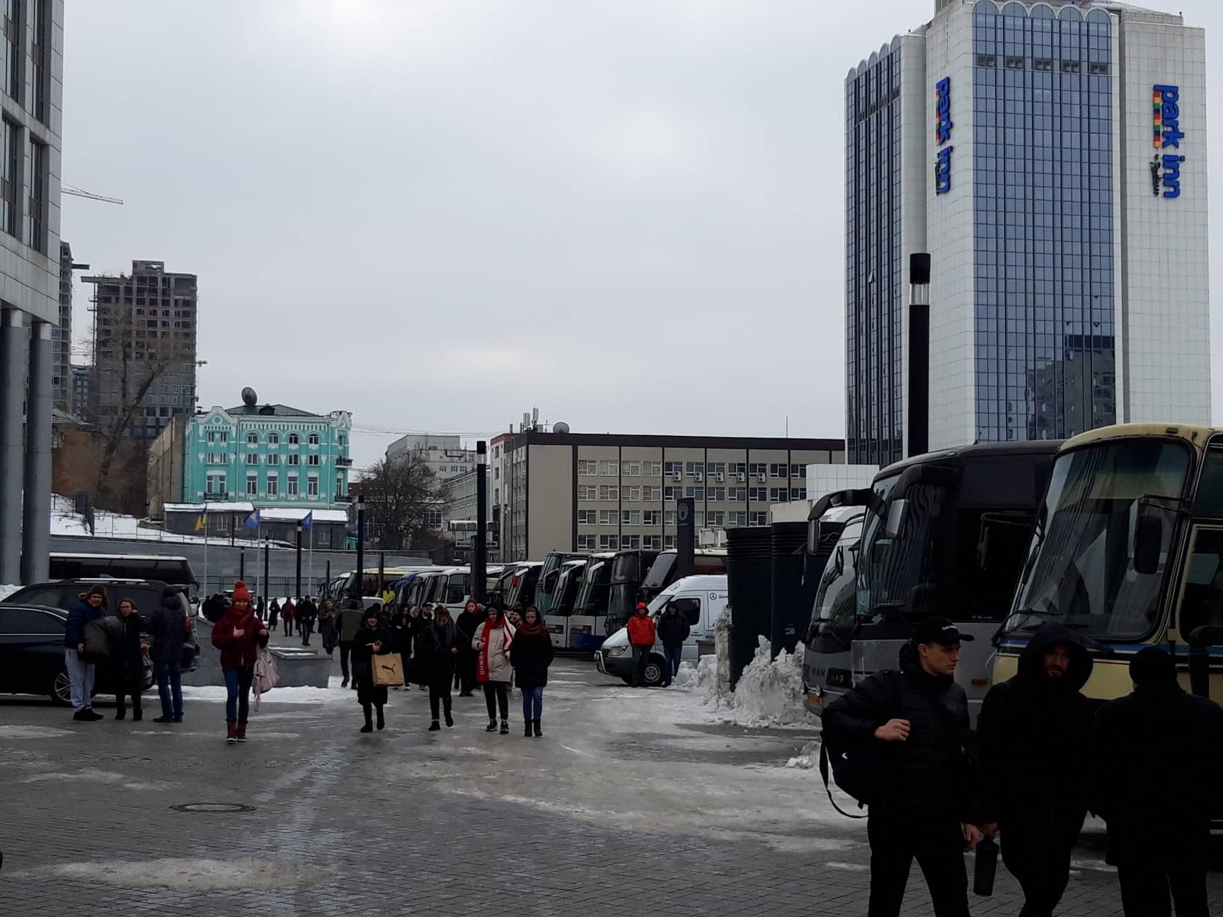 Багатьох приїжджих хвилювало питання, чи компенсують їм розтрати на дорогу, але їх запевняли, що гроші віддадуть. Деякі люди приходили вже зі своїми іменними запрошеннями. На території НСК Олімпійський припарковані десятки три-чотири автобусів. Номери різних регіонів (є навіть євробляха). Автобуси вже порожні. Є і на донецьких номерах.