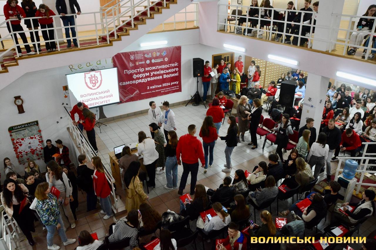 Понад триста учасників долучилися до Форуму учнівського самоврядування Волині. Захід триває 2 квітня в бібліотеці Волинського національного університету імені Лесі Українки.