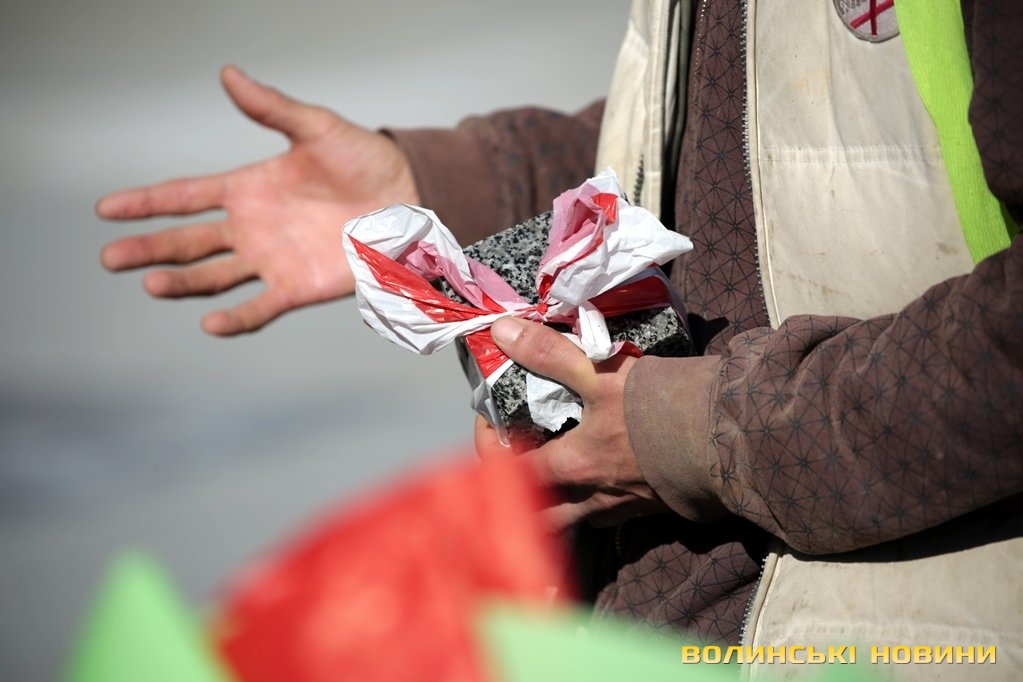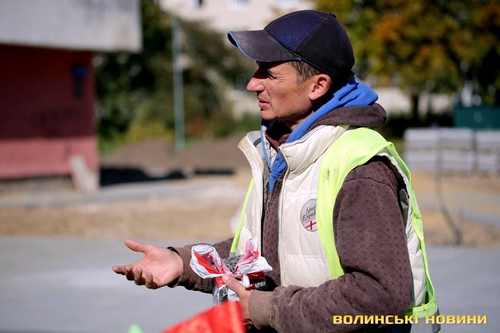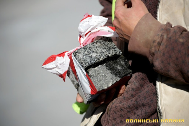Фундамент сім’ї: у Луцьку робітники, які реконструюють площу біля РАЦСу, дарують молодятам каміння. Фото
