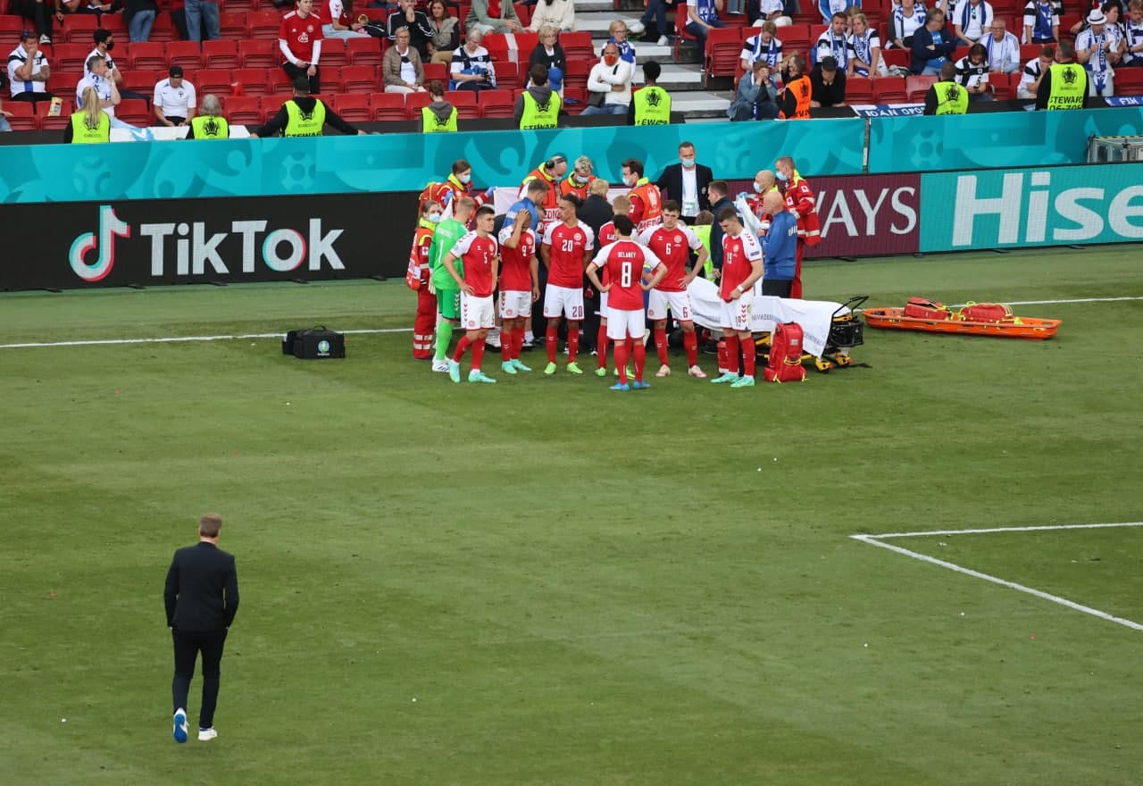 Нагадаємо, 29-річний лідер збірної Данії знепритомнів наприкінці першого тайму матчу з Фінляндією. Він похитнувся і звалився на газон в момент, коли партнер по команді вкидав на нього м’яч з ауту.