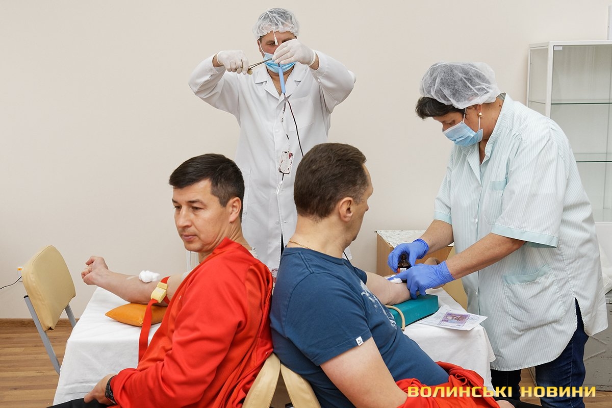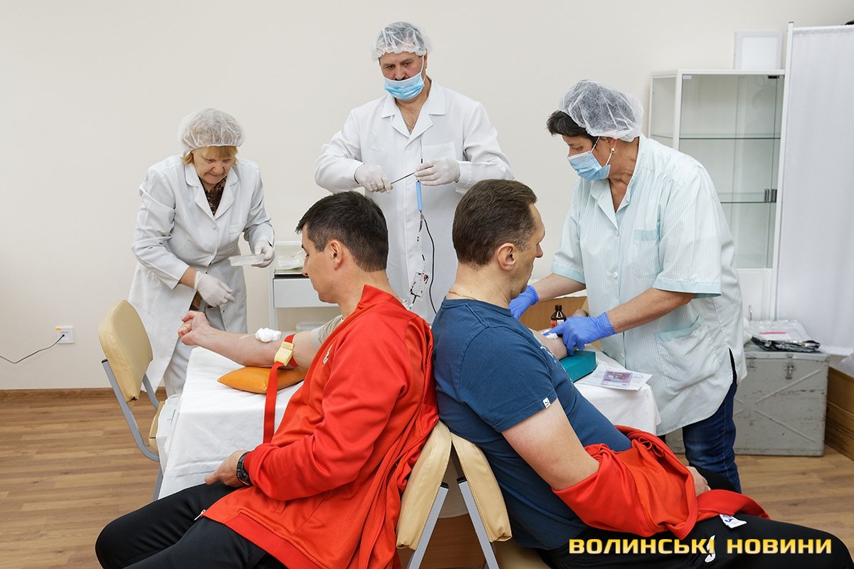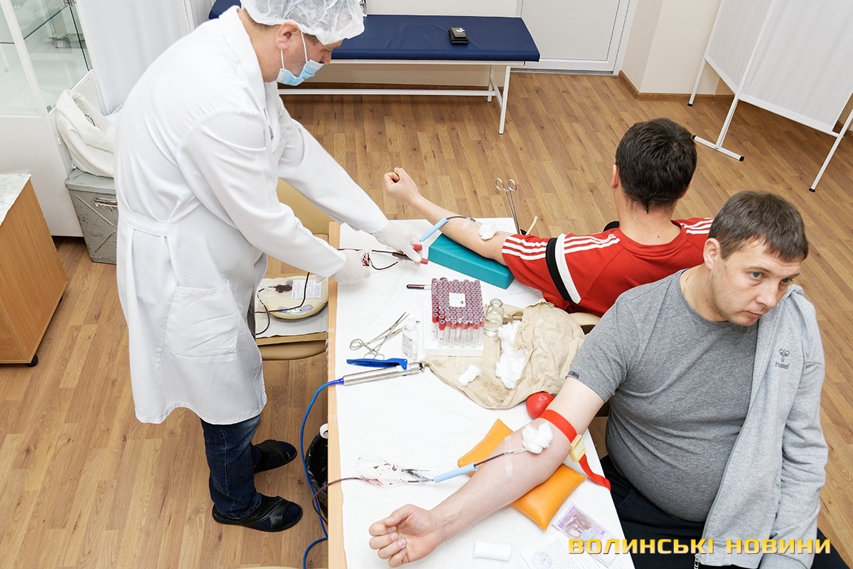 Близько одинадцятої години до медичного закладу почали з’їжджатися представники «Волині», зокрема і на клубному брендованому автобусі. Близько 60 людей, серед яких футболісти молодіжної, основної команд, а також тренерський штаб, з хорошим настроєм попрямували до приміщення, де і мали здавати кров. Втім, не все так просто – спочатку потрібно було пройти обстеження, аби визначити групу крові, та відповісти на питання про захворювання.Очільниця закладу Ірина Горавська розповіла, що акцію здачі крові вирішили розпочати у рамках Міжнародного дня передчасно народжених дітей.