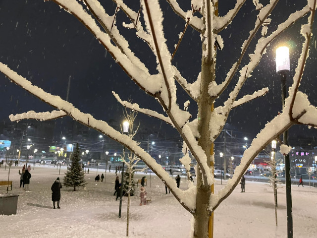 Гарна і святкова: показали засніжену площу перед РАЦСом у Луцьку. Фото