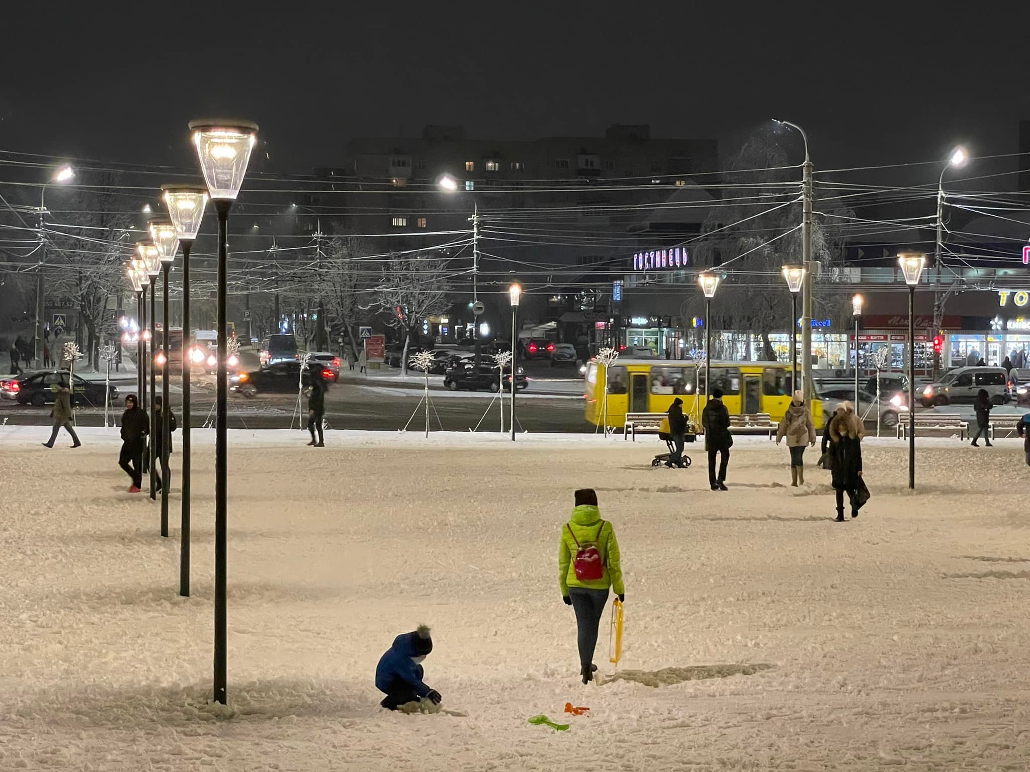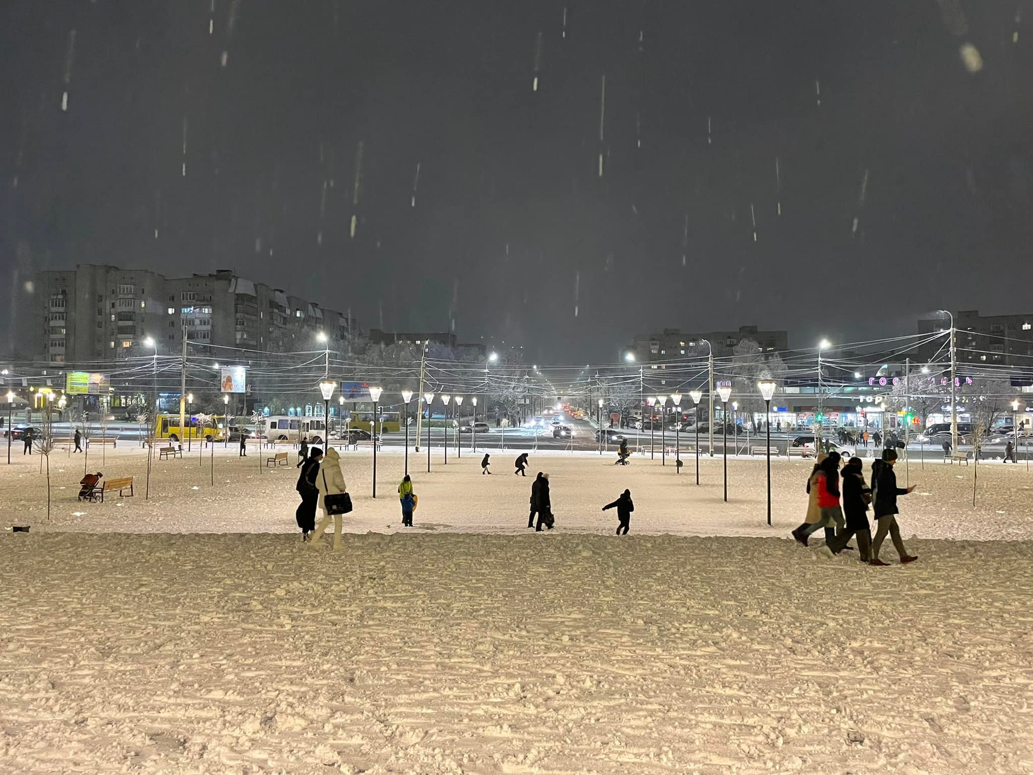 До слова, місцеві мешканці прогулюються, насолоджуючись зимовою погодою, а діти грають у сніжки та навіть катаються на санчатах.