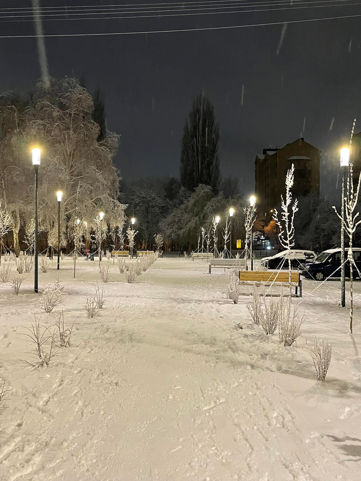 Як ми писали, облаштування площі Героїв Майдану перебуває на завершальному етапі. Так, тут вже облаштували вуличне освітлення.