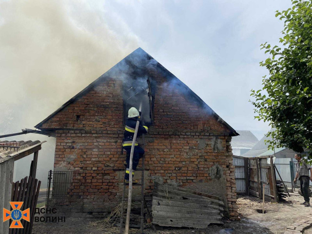 7 червня надійшло повідомлення, що в селі Скобелка на вулиці Береговій горить господарча споруда. На ліквідацію пожежі направили черговий караул 9-ї Державної пожежно-рятувальної частини міста Горохів.