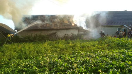 Пожежа сталася 7 серпня. Загорілася цегляна господарська будівля. Ймовірною причиною пожежі рятувальники вважають коротке замикання електромережі. Як видно з фото, на місці працювали три машини рятувальників.