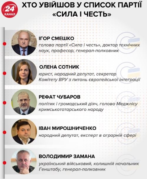 Хто увійшов у першу п’ятірку партії «Сила і честь»: інфографіка