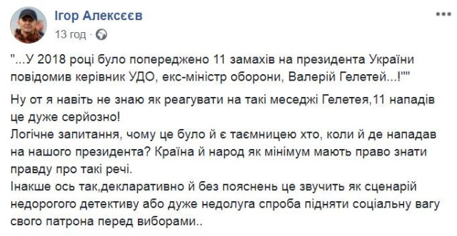 «Логічне запитання, чому це було й є таємницею хто, коли й де нападав на нашого президента? Країна й народ як мінімум мають право знати правду про такі речі.