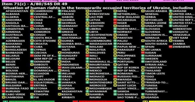 За проголосували 79 країн. Проти – 16, зокрема Росія, Білорусь, КНДР, Китай, Іран, Куба, Нікарагуа і низка африканських країн. Ще 73 держави-члени ООН утрималися від голосування.