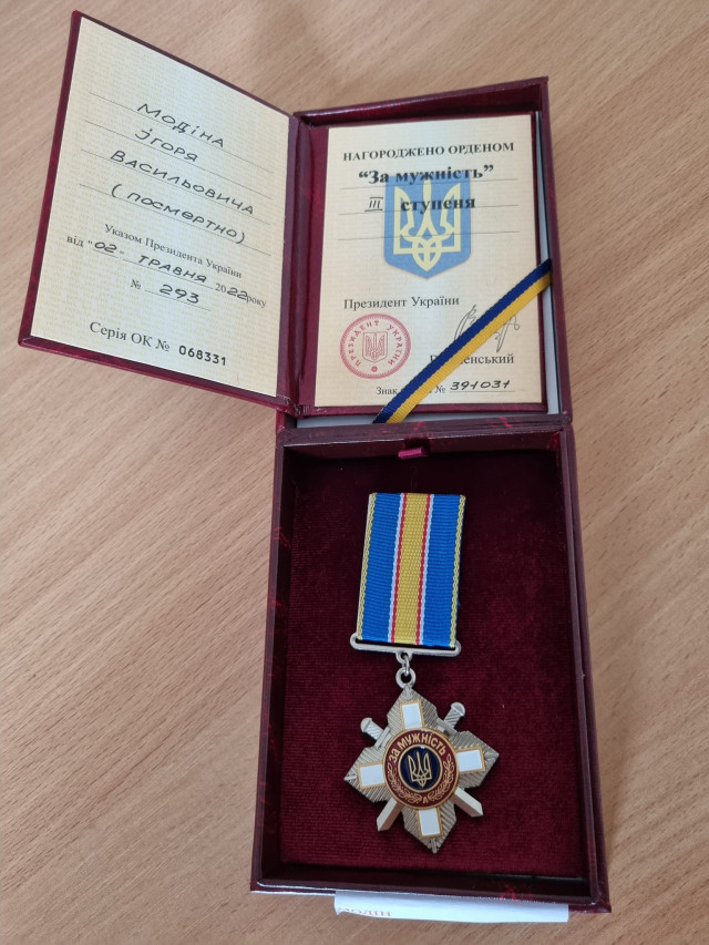 «Відповідно до Указу Президента України 293 від 2 травня 2022 за особисту мужність і самовіддані дії, виявлені у захисті державного суверенітету та територіальної цілісності України, вірність військовій присязі Ігорю Модіну посмертно присвоєно орден «За мужність» ІІІ ступеня», – йдеться у дописі.