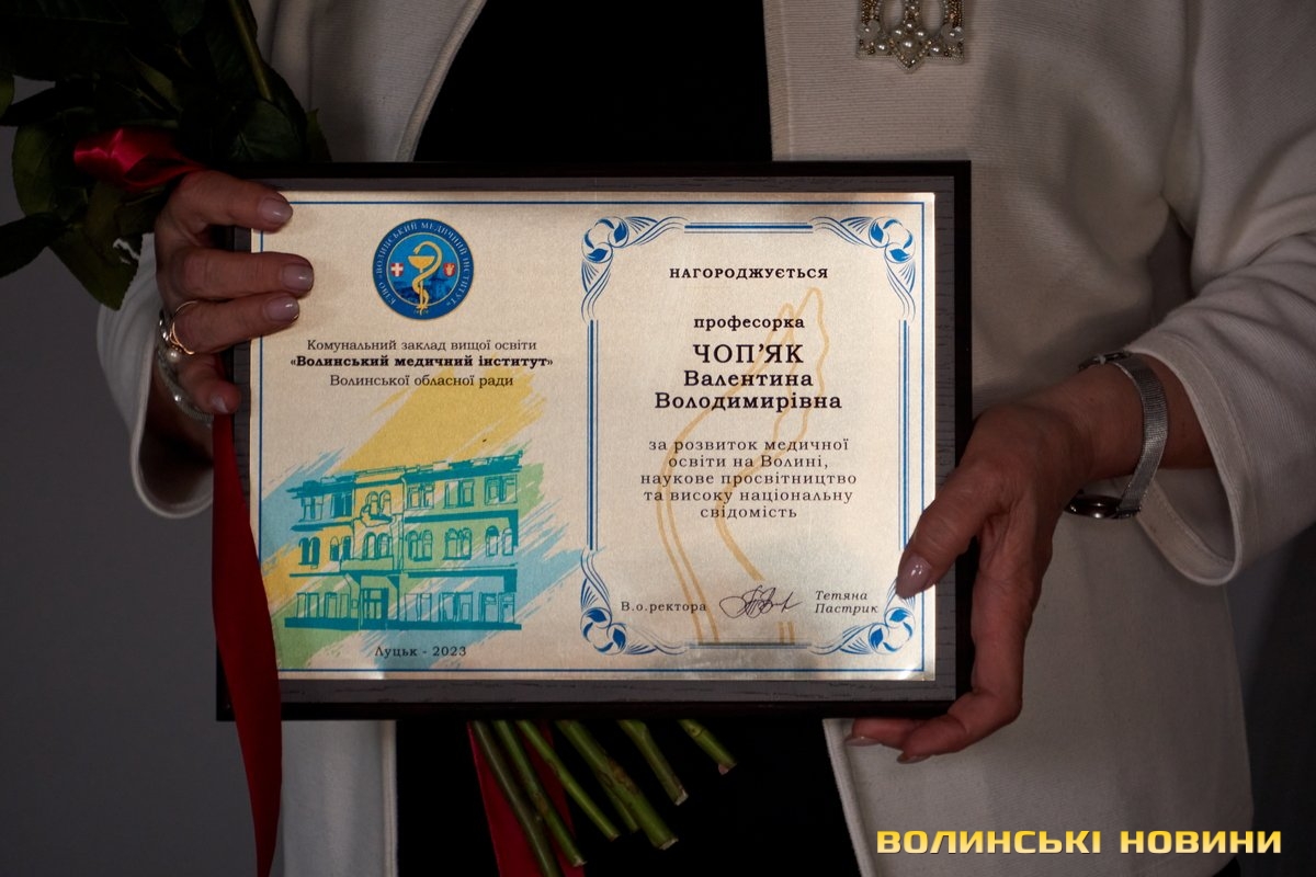 Почесну відзнаку у номінації «За розвиток медичної освіти на Волині» отримала лікарка-імунолог та алерголог, докторка медичних наук, професорка Валентина Чоп'як, донька нашого видатного земляка Володимира Чоп'яка. Тетяна Пастрик відзначила надзвичайний внесок Валентини Володимирівни у організацію та проведення конференції та підкреслила, що така номінація буде щорічною.Валентина Чоп'як, своєю чергою, нагородила кращого студента Волинського медичного інституту.