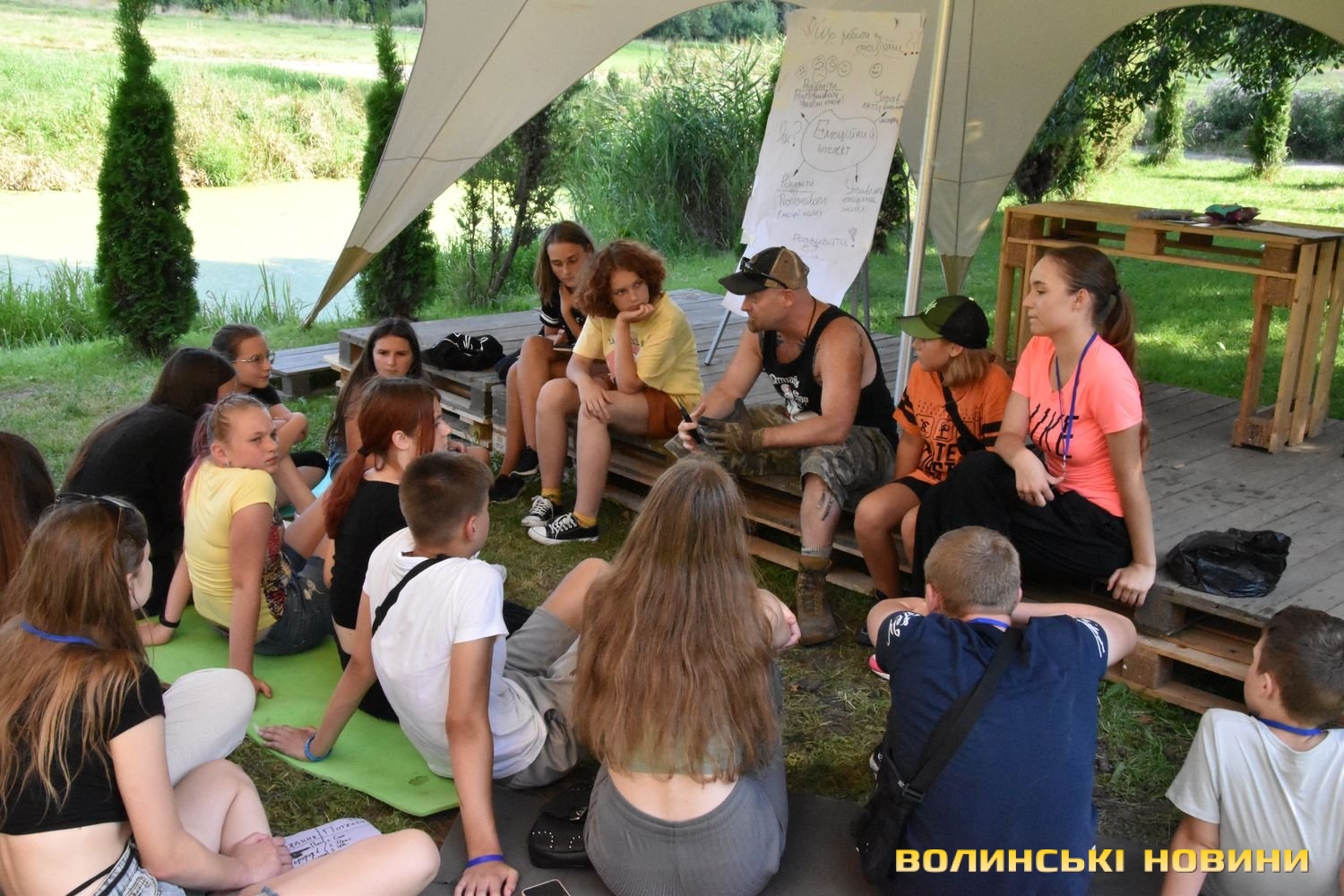 Для підлітків улаштували насичену пізнавально-розважальну програму. Організатори ставили за мету навчити дітей контролювати психоемоційний стан та додати їм позитивних емоцій. Задля цього під час таборування працювали психологи, які проводили практичні вправи.Читати ще: У музеї-скансені поблизу Луцька – козацьке таборування для дітей. Фото