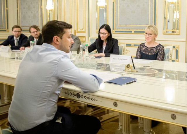 На прохання ЄП зауважити відмінності між Зеленським та Порошенком, із яким вона кілька разів зустрічалася раніше, шведська дипломатка спершу взялася розповісти про схожі позиції президентів (щодо Донбасу та реформ), а потім згадала, наявну відмінність.