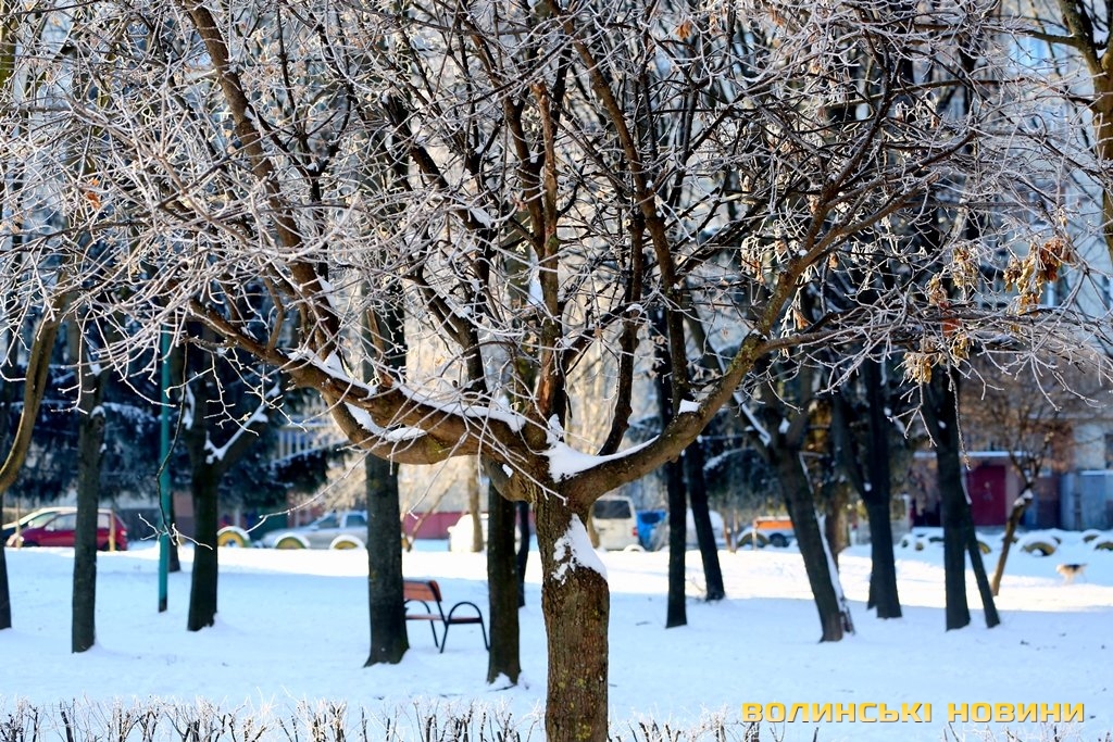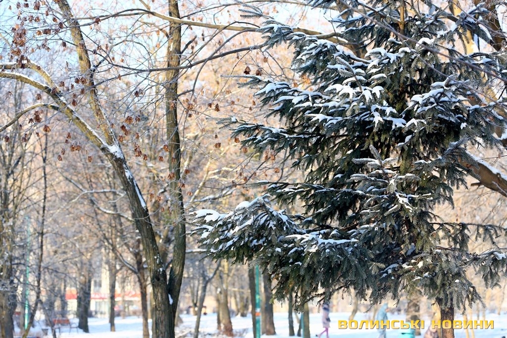 Ще декілька днів тому погода в Луцьку була не надто святковою, і Новий рік лучани зустрічали, спостерігаючи з вікон своїх затишних домівок дощову погоду. Проте вже на Різдво небо подарувало обласному центру Волині та його жителям такий очікуваний сніг, який вкрив білою ковдрою усе місто.