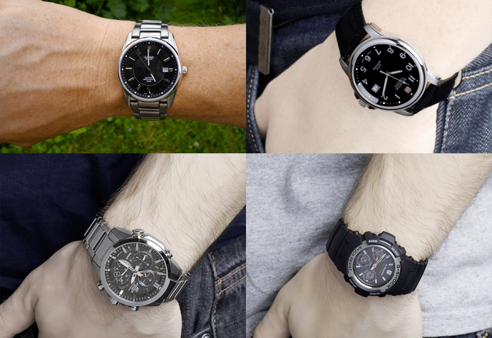 Підбираючи розмір корпусу, важливо дотримуватися правила: вушка годинника не мають виходити за краї зап'ястя. Більший корпус доречно купувати людині, у якої великі руки. На повному зап'ясті мініатюрний аксесуар може мати неприродній і навіть жіночний вигляд.
