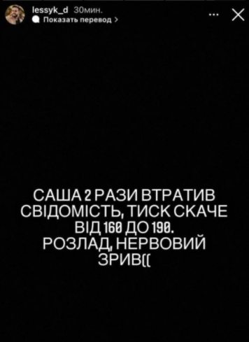 Він опублікував фото, на якому Заліско лежить на дивані в оточенні медиків, і відео з карети швидкої допомоги. За словами Лесика, блогер двічі знепритомнів, у нього почалися проблеми з тиском і нервовий зрив.