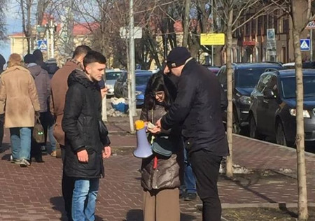 Лучанин Іван Лазорко став свідком проплаченого мітингу проти кандидата в президенти Володимира Зеленського. Роздавала гроші учасникам акції по її закінченню голова ГО «ВГО «Солідарна молодь» Дінара Габібулаєва.