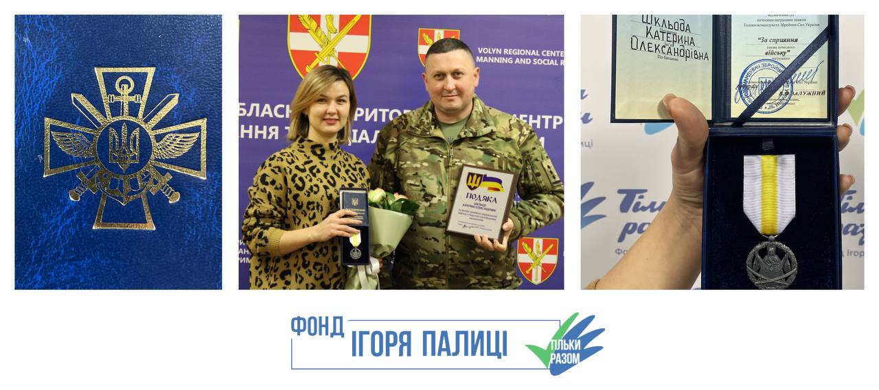 Діяльність Фонду Ігоря Палиці «Тільки разом» відзначили у Збройних силах України. Голова правління Катерина Шкльода отримала нагороду від Головнокомандувача ЗСУ Валерія Залужного – почесний нагрудний знак «За сприяння війську».