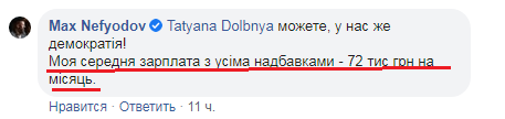 У коментарях до одного з постів на особистій сторінці у фейсбуці Нефьодов написав, що його середня зарплатня з усіма надбавками – 72 тисячі гривень на місяць. Також він поскаржився, що з березня з нього зняли надбавки з подачі ексміністра фінансів Ігоря Уманського.Під час роботи на посаді голови Мінфіну Ігор Уманський ініціював відставки голови Державної податкової служби Сергія Верланова і голови Держмитної служби Максима Нефьодова.