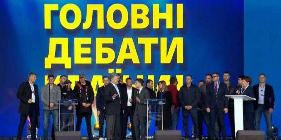 Дебати кандидатів у президенти Володимира Зеленського та Петра Порошенка розпочалися о 19.00 на НСК «Олімпійський» в Києві.