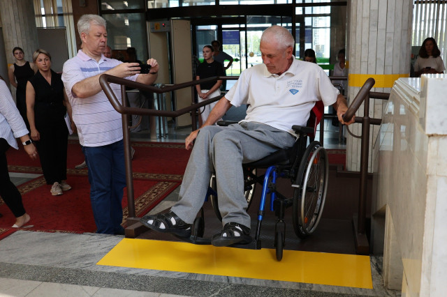 За безпосередньою участю начальника ОВА Івана Рудницького вони перевірили пандус, вхідну групу, ліфти, санвузли та кабінети, аби дати реальну оцінку рівню безбар’єрності.