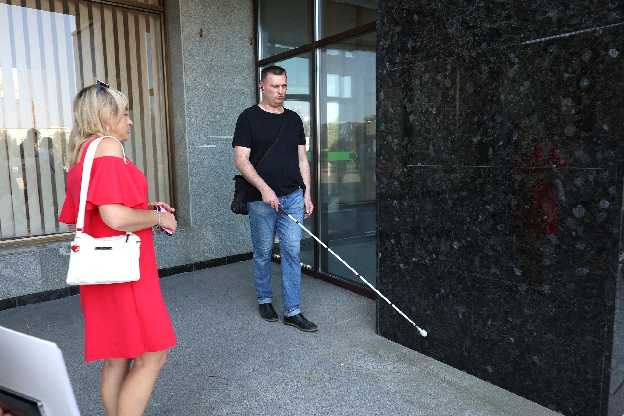 Тож під час перевірки тестували вхідну групу, пандуси, ліфти, санвузли та роботу підрозділів, які приймають громадян. Іван Зайчківський та Світлана Мартинік – люди з порушенням зору, а також Марина Мажула та Дмитро Цопко на кріслах колісних поділились своїм практичним досвідом та допомогли визначити ключові недоліки.
